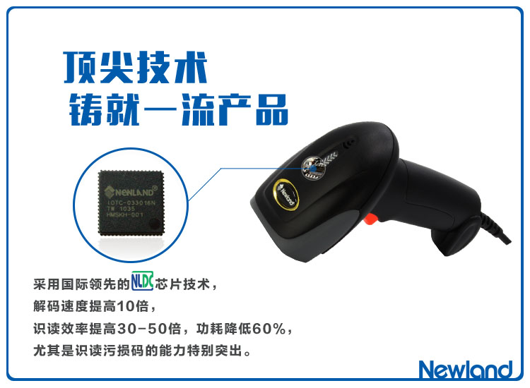 新大陸OY10掃描槍采用國際領(lǐng)先的芯片技術(shù),解碼速度提高10倍,識(shí)讀效率提高30-50倍,識(shí)讀污損碼的能力特別突出。手機(jī)碼商品碼,一槍搞定。即插即用,維護(hù)簡單。結(jié)實(shí)耐用:掃描頭部位采用軟膠保護(hù),防滑、防震、抗摔落