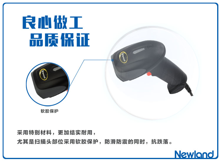 - 4、結(jié)實(shí)耐用:掃描頭部位采用軟膠保護(hù),防滑、防震、抗摔落。